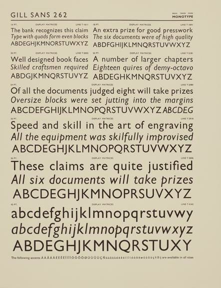 Though similar, Gill Sans is not the typeface used for the London Underground. That typeface is called Johnston, designed by Edward Johnston. Gill Sans is based on Johnston (the font) and Johnston (the man) was Eric Gill’s teacher.
