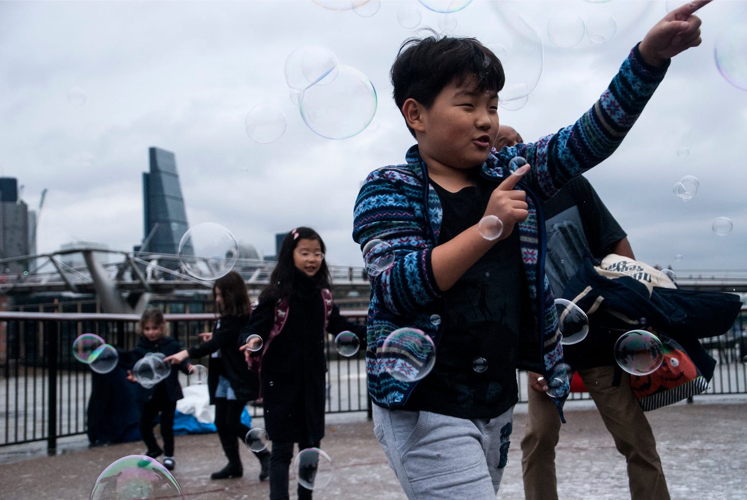 To my mind, good street photos capture a serendipitous moment—a head on a shoulder, the wind blowing someone’s hair just the right way, a split-second facial expression, a leap over the puddle. Henri Cartier-Bresson’s “decisive moment.” The most memorable images pair this serendipity with juxtaposition, showing us something often unexpected, ironic, or humorous.